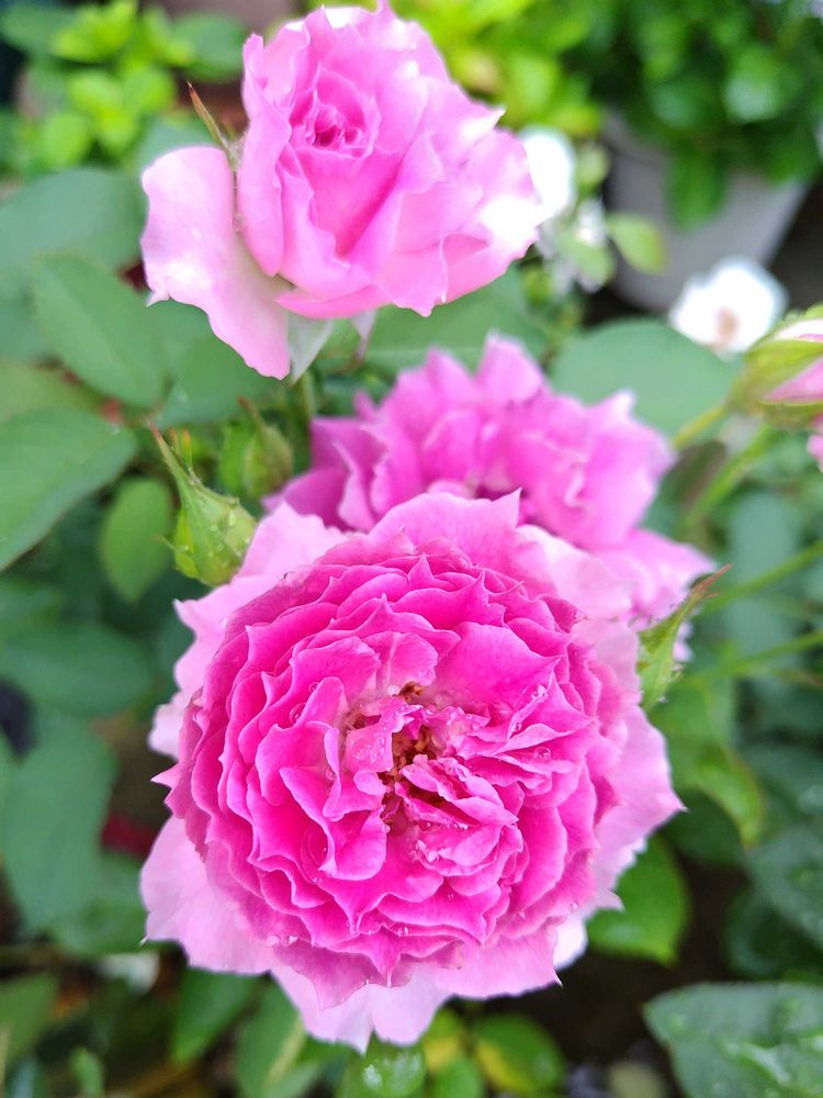 アパートの専用庭で、四季咲きバラをメインに約60鉢育てています。紫・白・桃色中心に集めて、香りが気に入ったり出先で一目惚れした植物たちです!