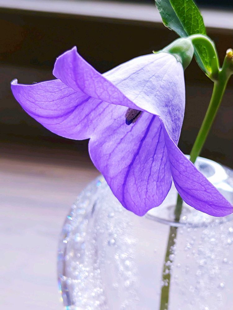 桔梗の美しさが際立つうえに、硝子の水泡と影と光のバランスが素敵💓