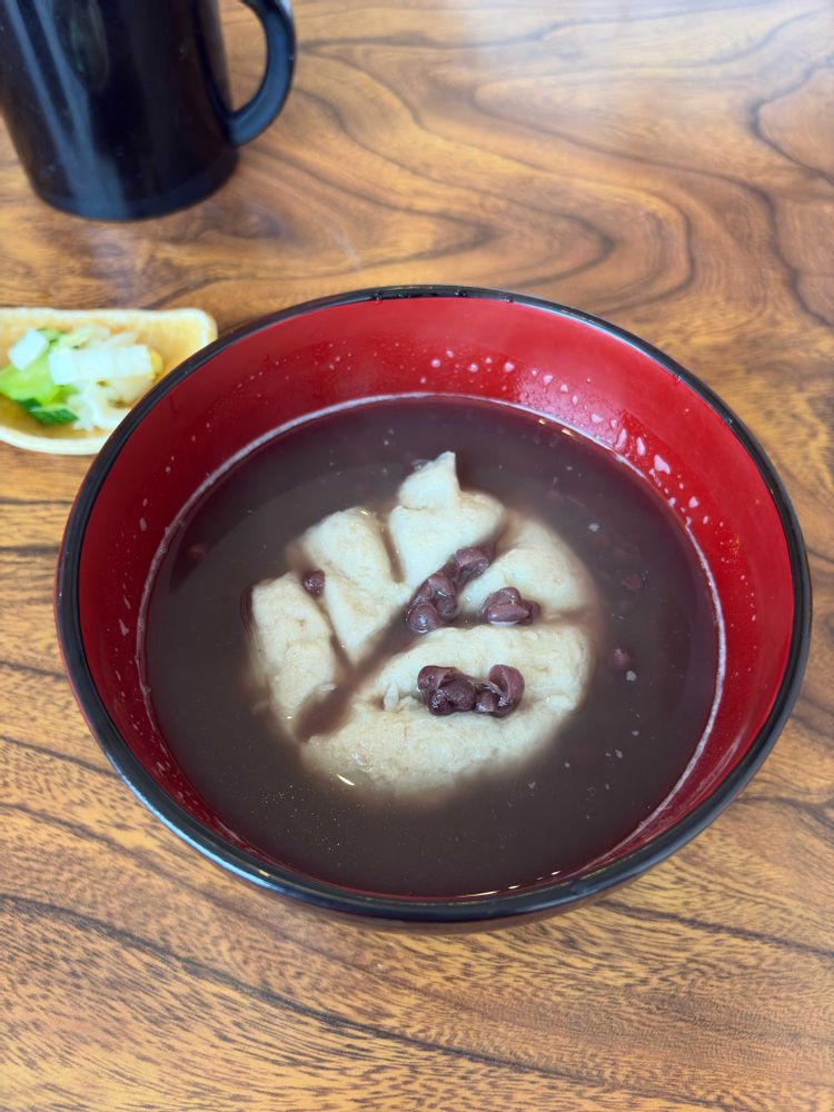 ③そばがきぜんざい。甘さも丁度いい感じに仕上げてあり、また食べたいと思った一品👍🎶