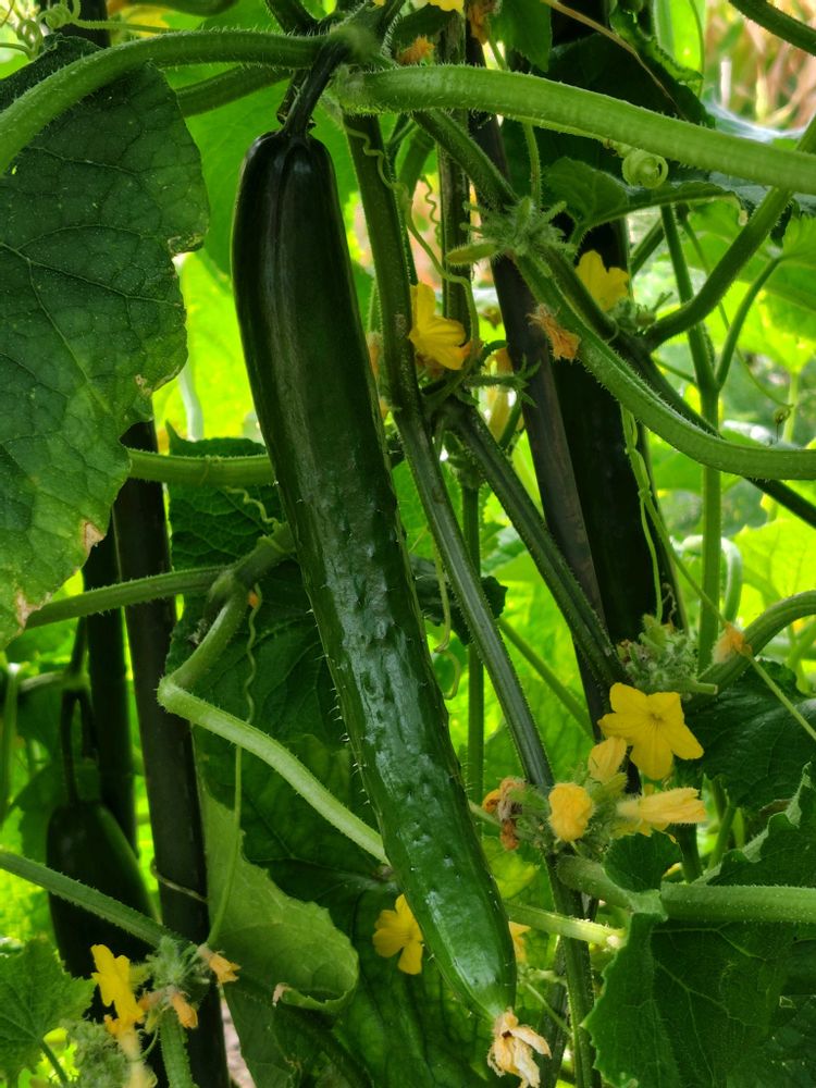 今朝、「おはようございます。」と声をかけたら、写真撮影を許可され、お土産に大きく育ったキュウリを6本もいただきました。