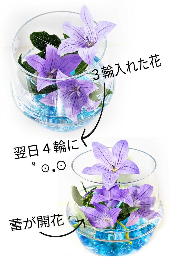 3️⃣アレンジから除いた花3輪をガラス器へ 翌日4輪に増えていた