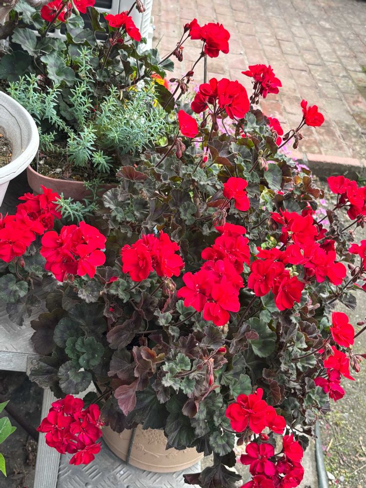 ③ゼラニウムさん、情熱的な赤❤1年中咲いています。流石に冬は家に入れますが❣