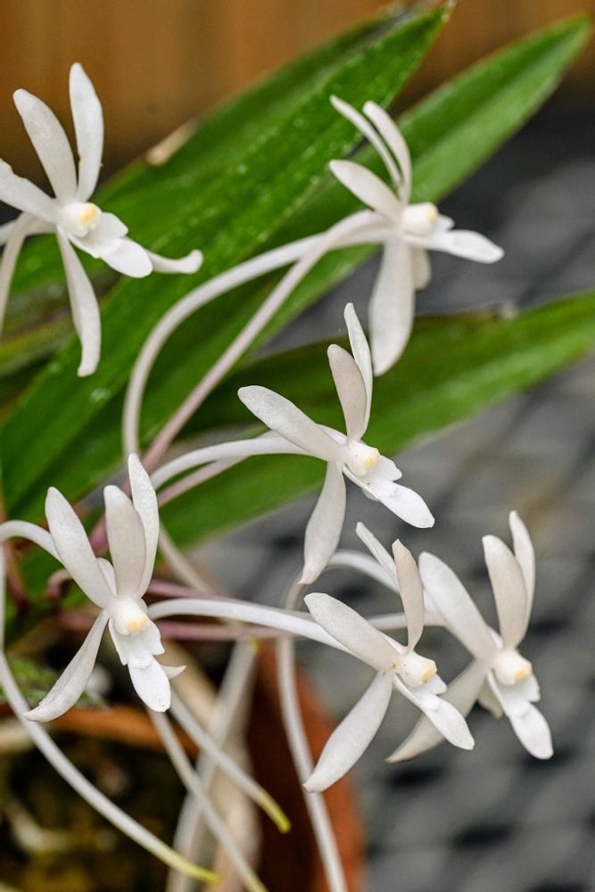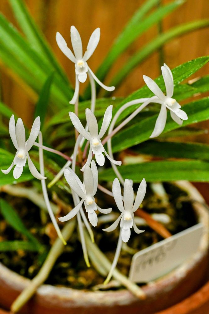 温室は休止中でしたが、少し蘭の鉢が表の棚にありました。