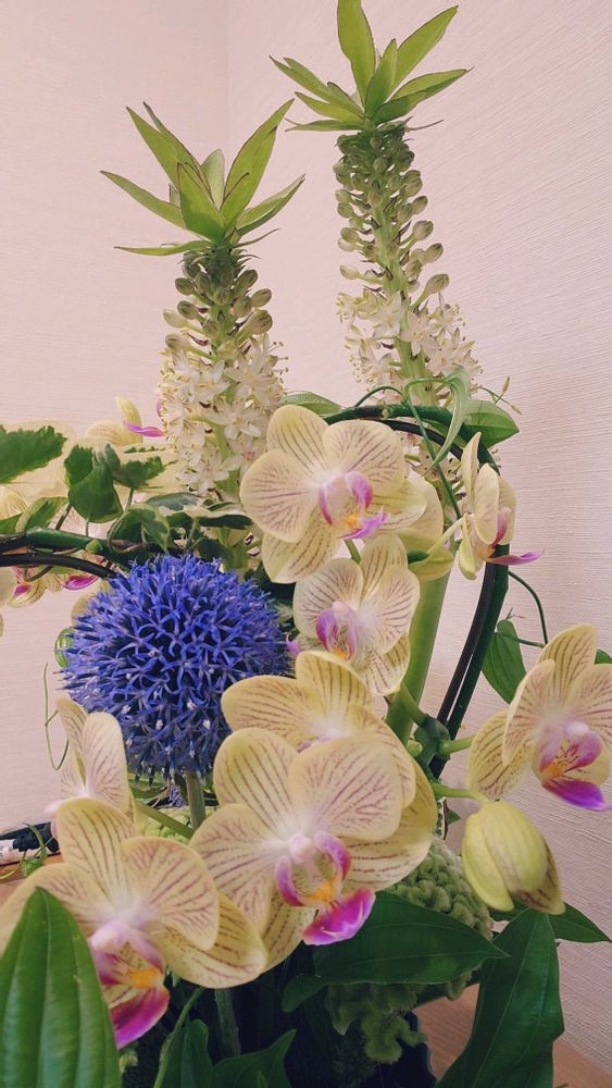 今週はかわいい胡蝶蘭とパイナップルリリー❤️ルリタマアザミがアクセント✨