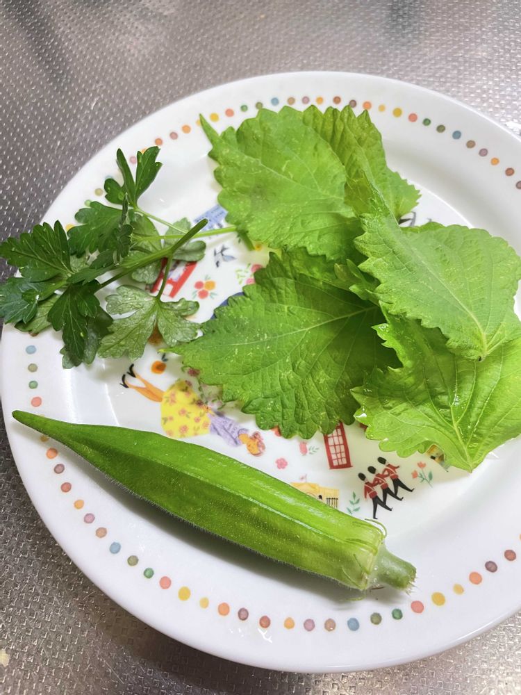 4️⃣ 立派なオクラちゃんと大葉、イタリアンパセリと収穫!
