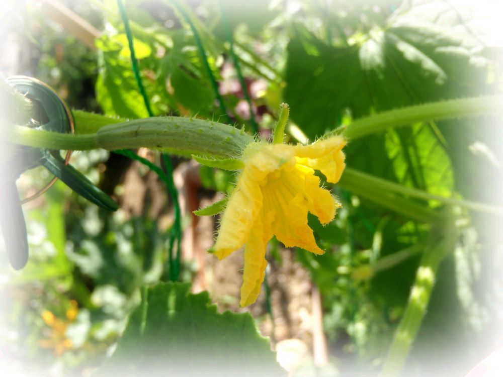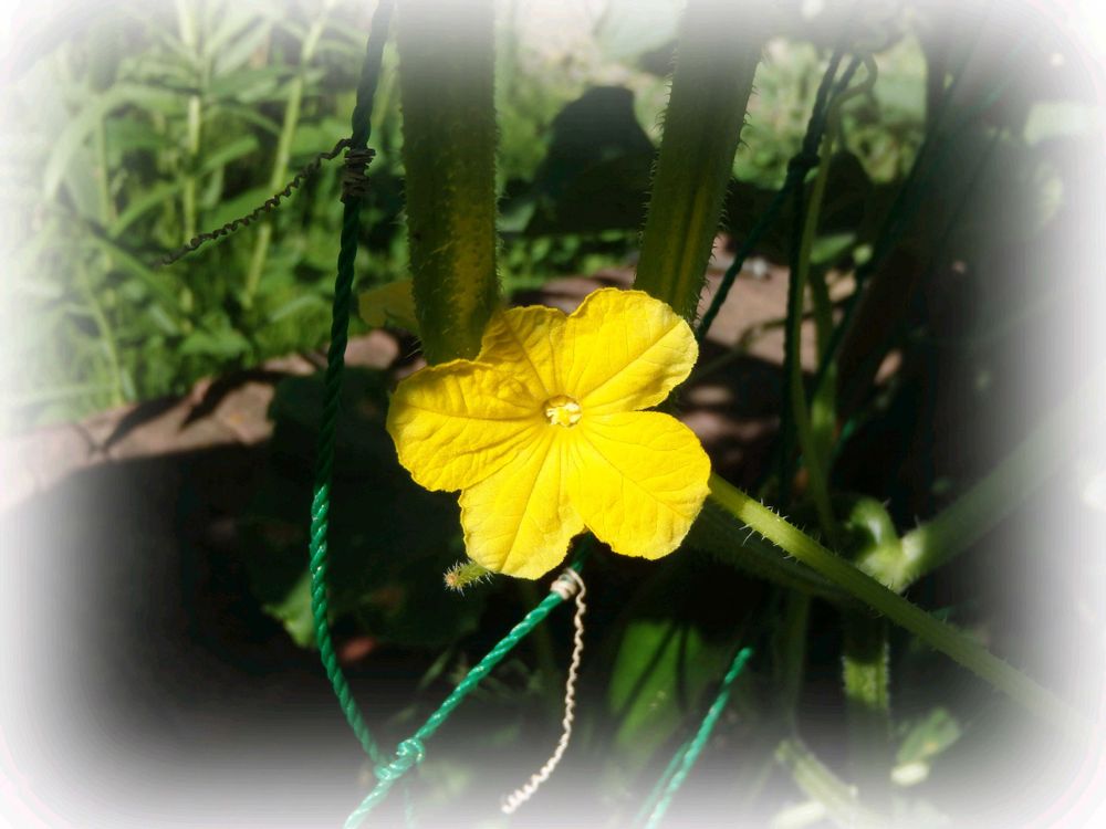 このように花も咲き、実もなっているのですが、④の実っこの後ろの雌花は基の所が黄色くなってて、これは実になりません。こういうのが結構多くて、なかなか毎日採れるようにはなりません。