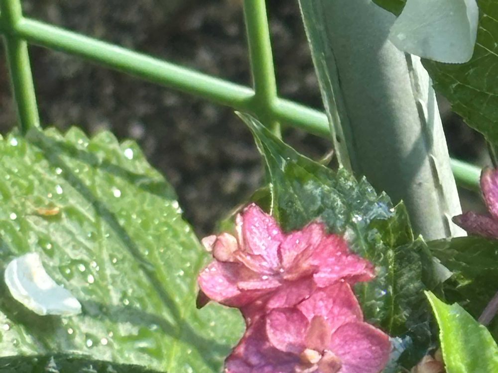 三枚目は、額アジサイのピンク姫と勝手に名付けてるピンクのアジサイ