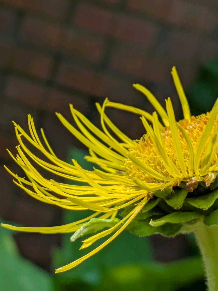 イガグリのような花芯(頭状花)の周りに細長い花弁がつき 咲き進むと反り返ってきます
