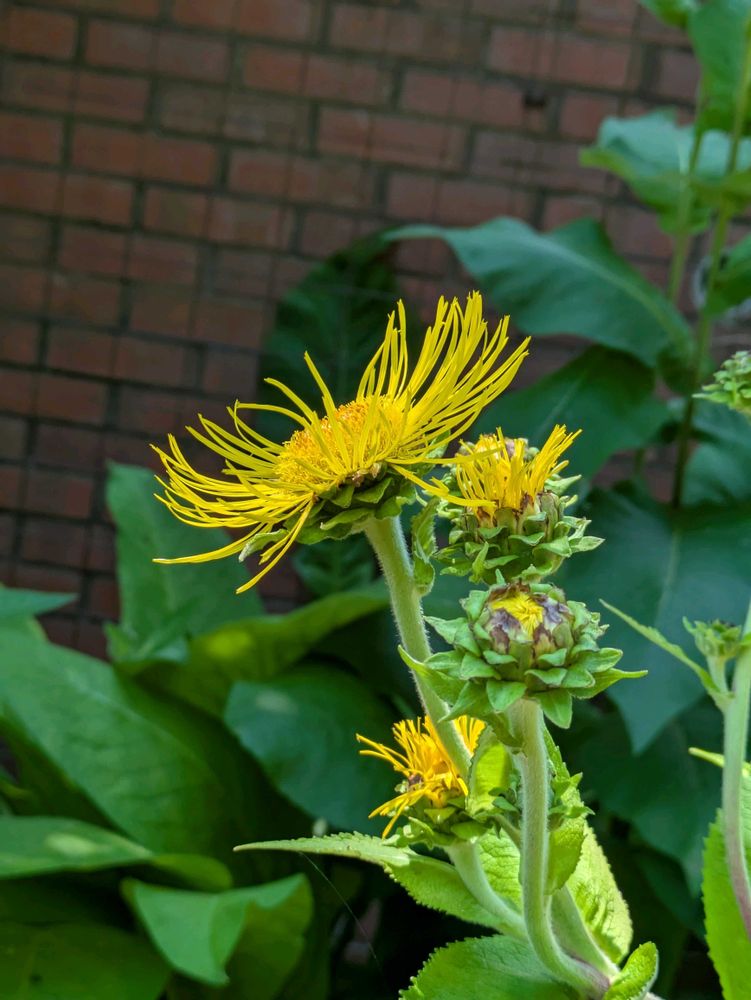 7~10月に茎頂に散房花序をだし径約4cmの黄色💛の頭花をつける
