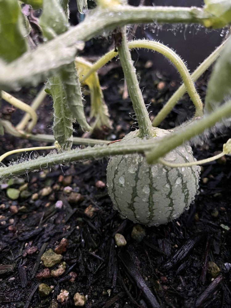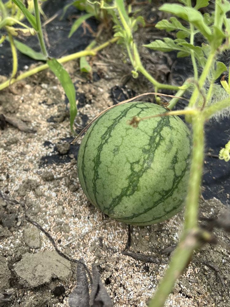 小さいながら、スイカの模様があるんです。成長が楽しみで〜す。o(^-^)o