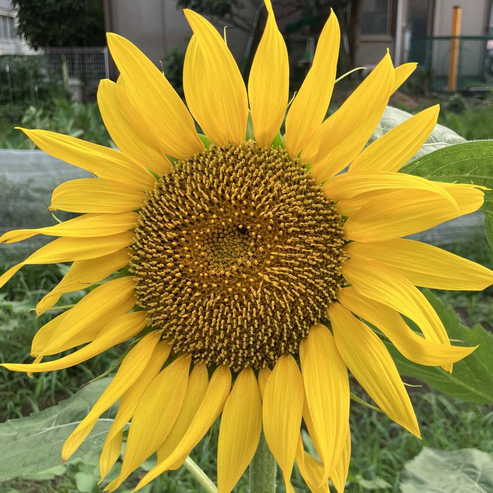 早朝散歩で見かけたヒマワリ、連日の猛暑にも負けていません。