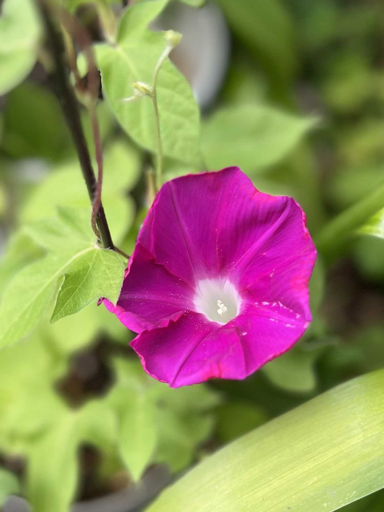 ④今年の朝顔第一号、咲きました💖濃いピンクが鮮やか✨