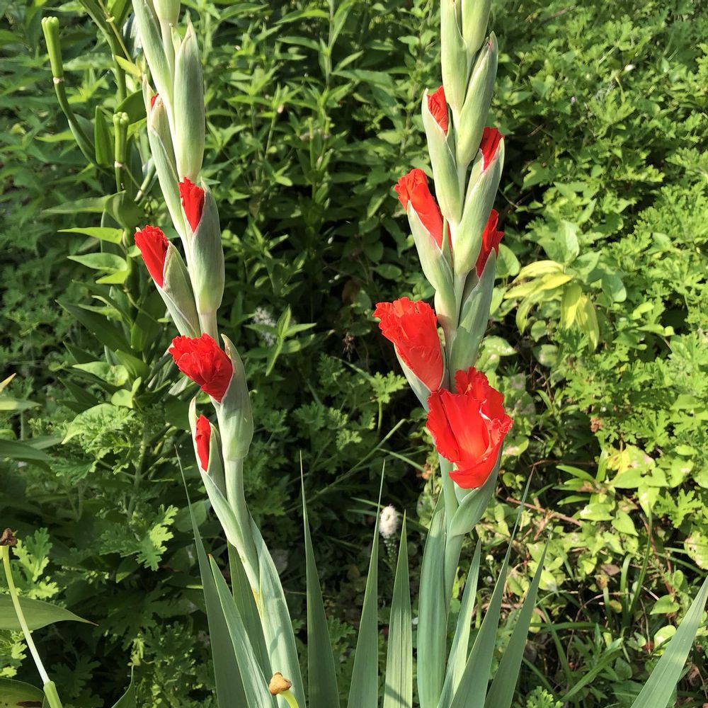 3.ツインタワーグラジオラス、そろそろ開花。基本的に我が家では密植はしないが、こうして自然分球で同じ植物が並ぶ姿を見ると、こういうのも良いなと思う。