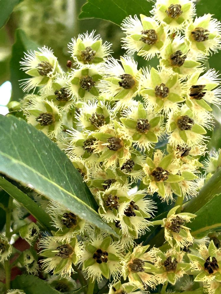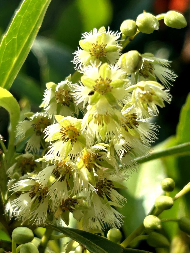 実が緑のオリーブ🫒みたいだからか、お花もちょっと緑色っぽく見えています😍