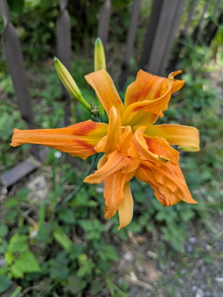 八重咲きのオレンジ色が鮮やかです。 咲き方もそれぞれ違って個性的です🤗