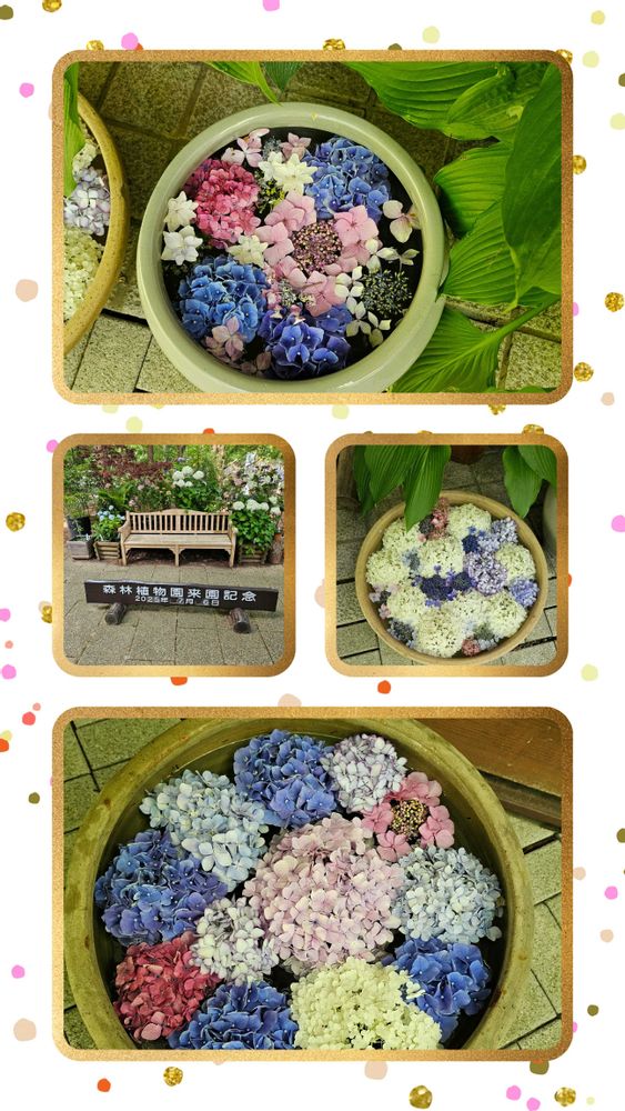 神戸の森林植物園の紫陽花の花手水でした💙🩵🩷🤍