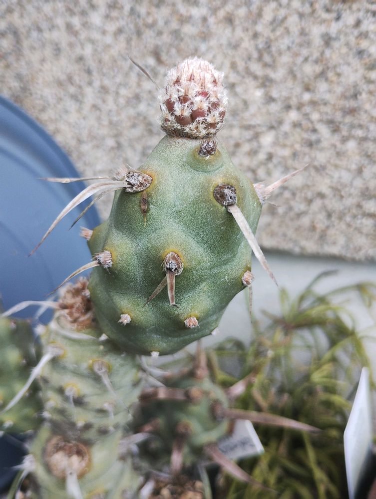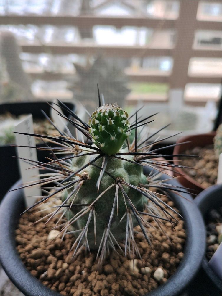 テフロカクタスとしか名札にはないので名前は不明ですが黒棘がカッコよくて育ててました。遂にお子様らしきものが現れました❣️2枚目もテフロカクタス 昼のミサ。3枚目からは今日のお花 セダムです。