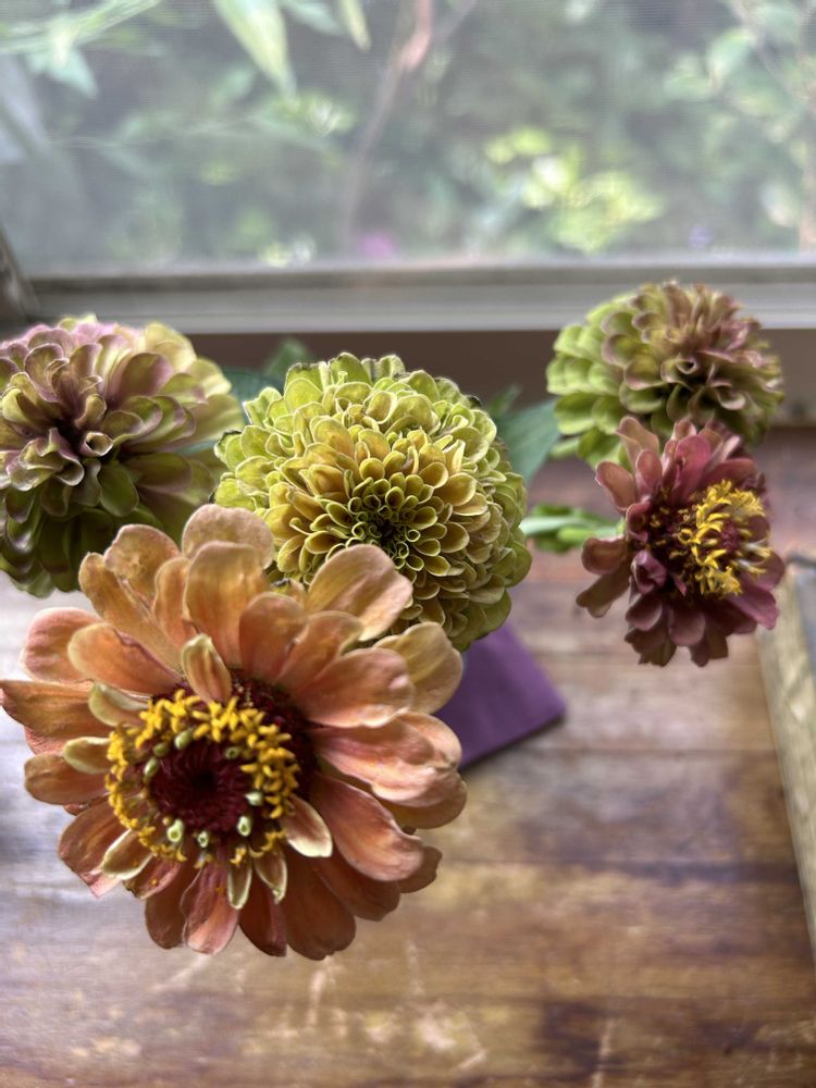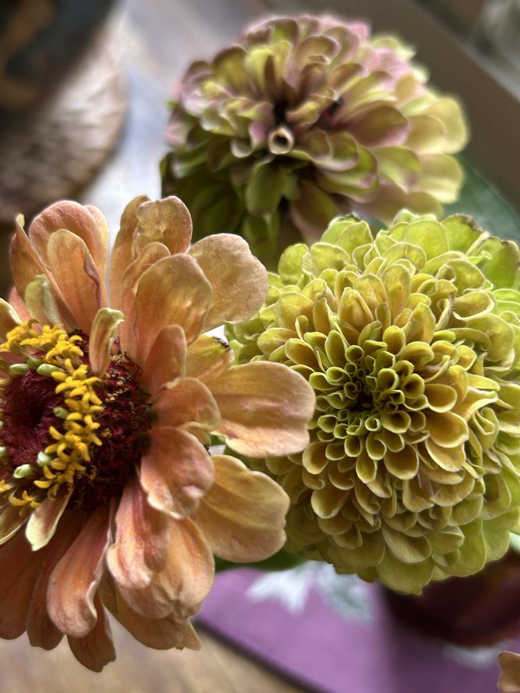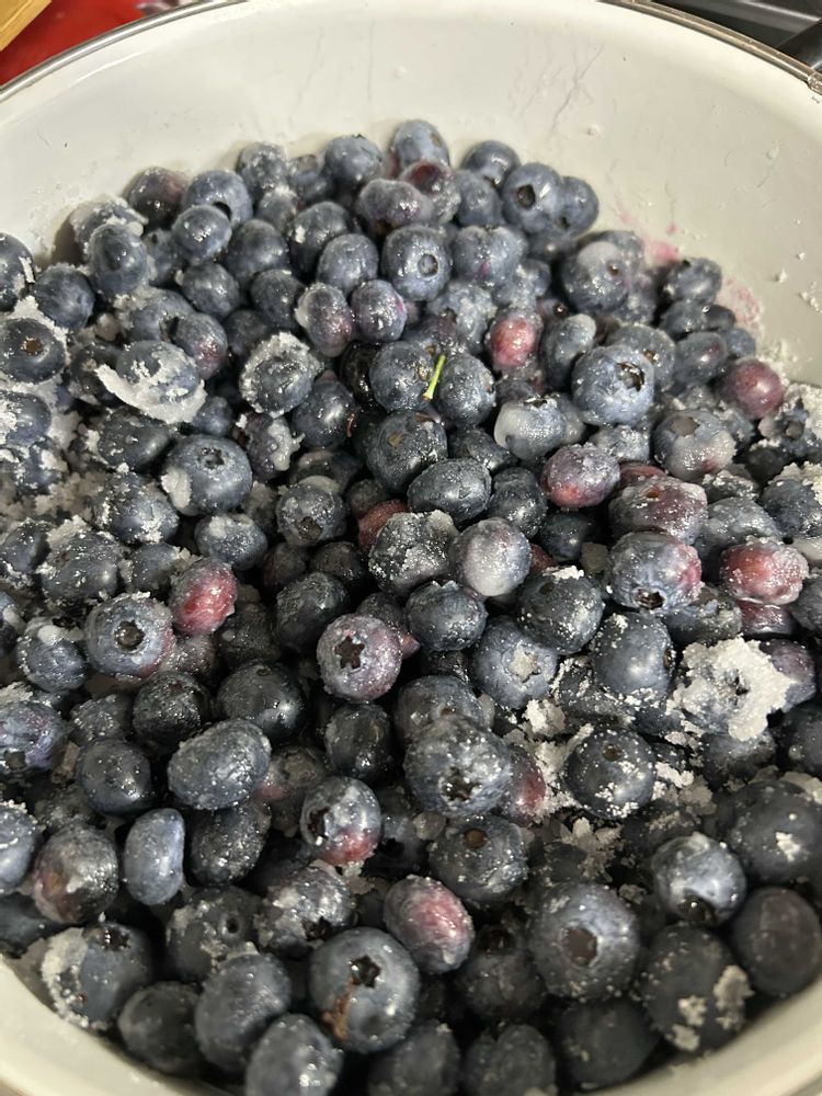 庭の百日草が咲きました💛八重でかわいい💛変わった色と花びらのバラを頂きました💕早速昨日のブルーベリー🫐をジャムに