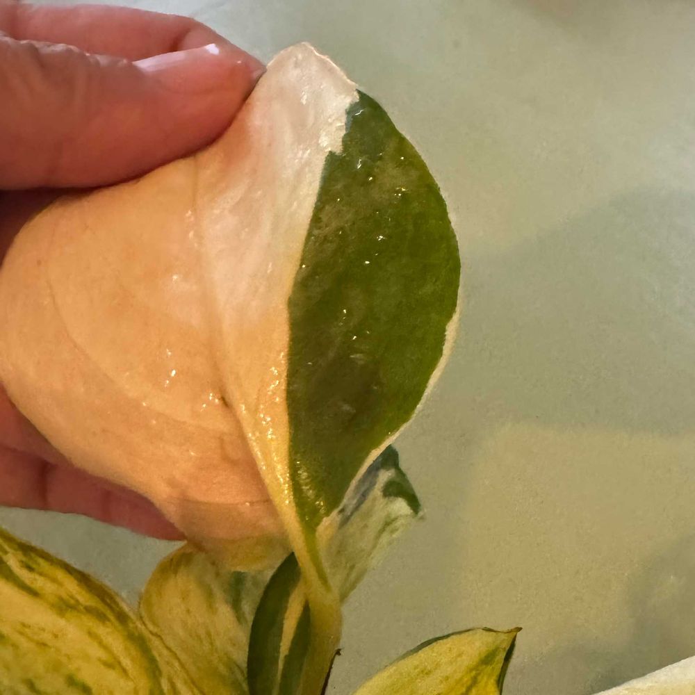 一番上の葉っぱは真っ白かと思いきや、裏にちょっとだけ緑