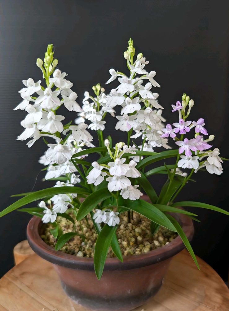 白の中にピンクが一本あリますけどサツマチドリさん色合いも沢山ありますよ🩷🤍
