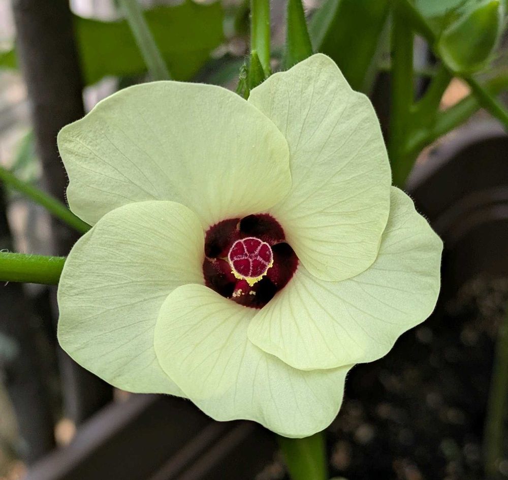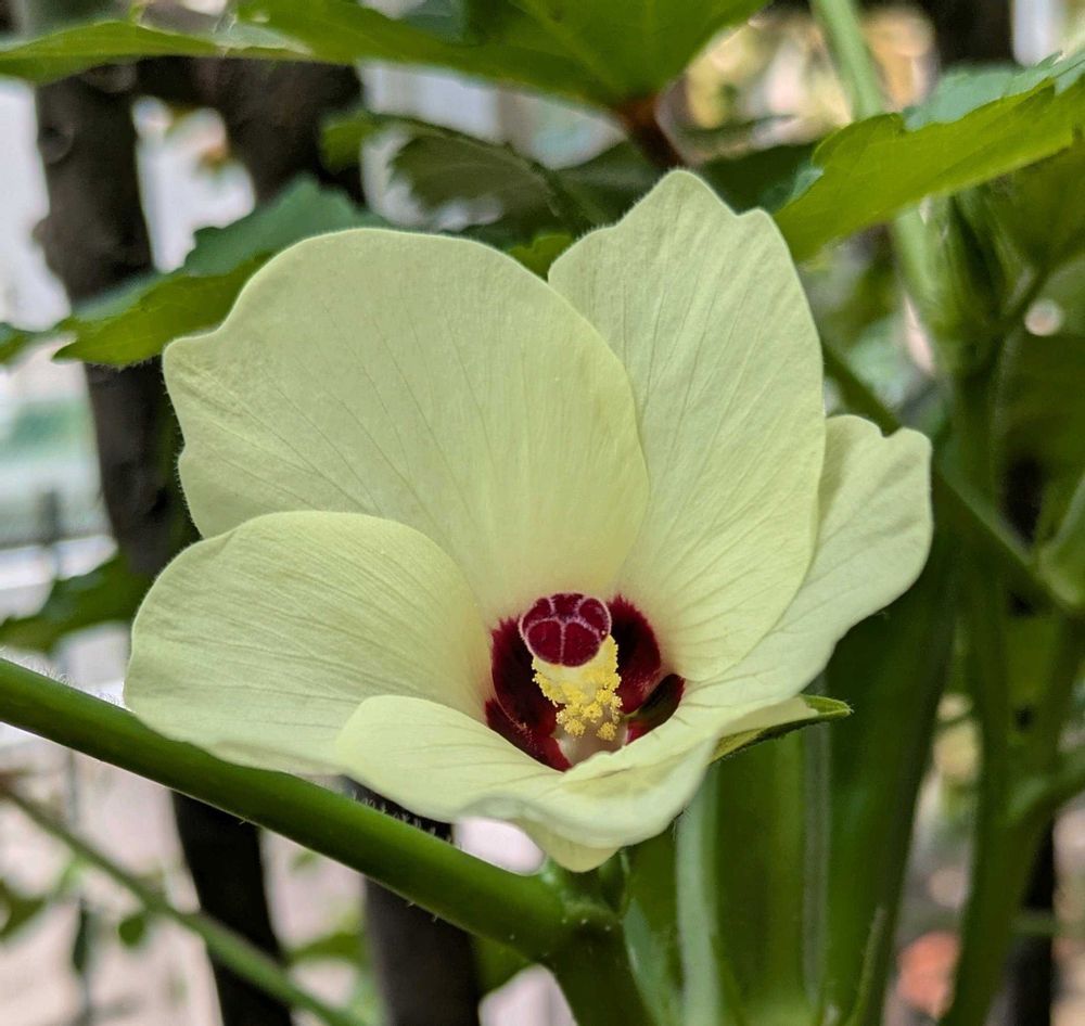 オクラは花もかわいく、実は食べられて良いですね(๓´˘`๓)♡