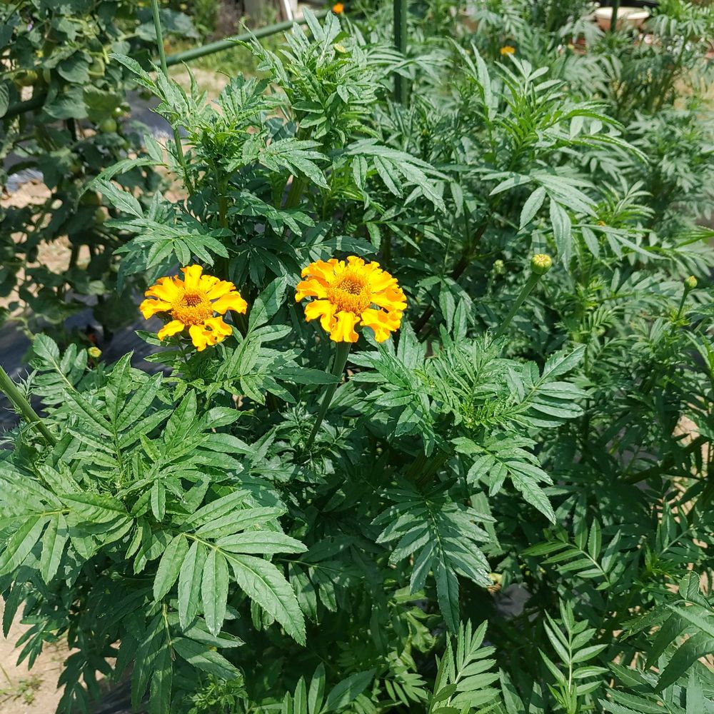 畑のサラダ菜の間の黒マルチに植えたらドンドン大きくなってマリーゴールド畑になってます😆💦