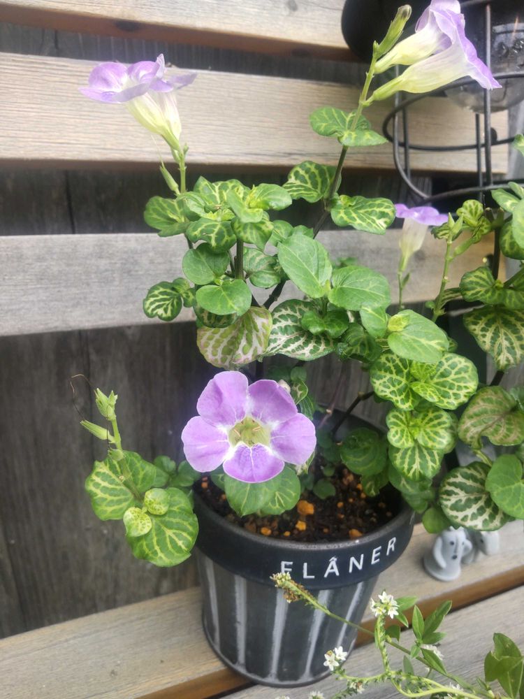ニチニチソウと一緒に買っていた斑入りの葉っぱが魅力だった