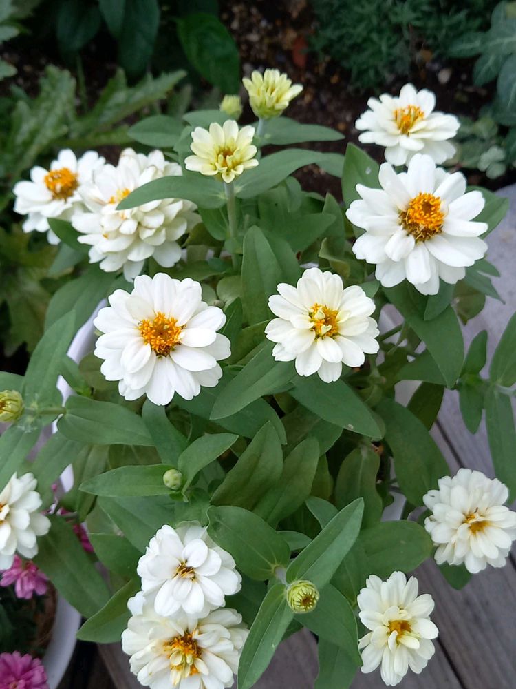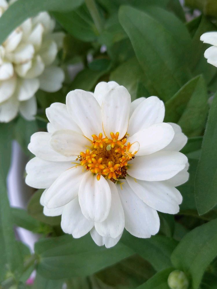 ジニア白、綺麗に咲いていますね。🤍💚🌿