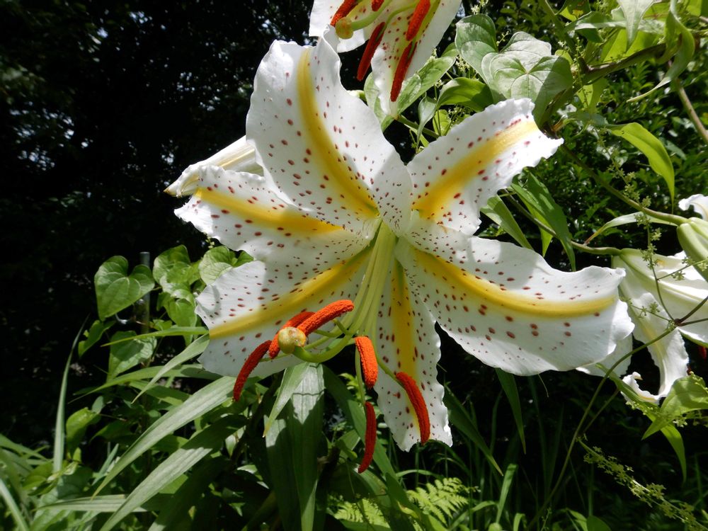 地元の野山でヤマユリ⚜️が咲き出しました。ササユリ開花から1ヶ月、真夏になって田園地帯や野山で目立ちます。