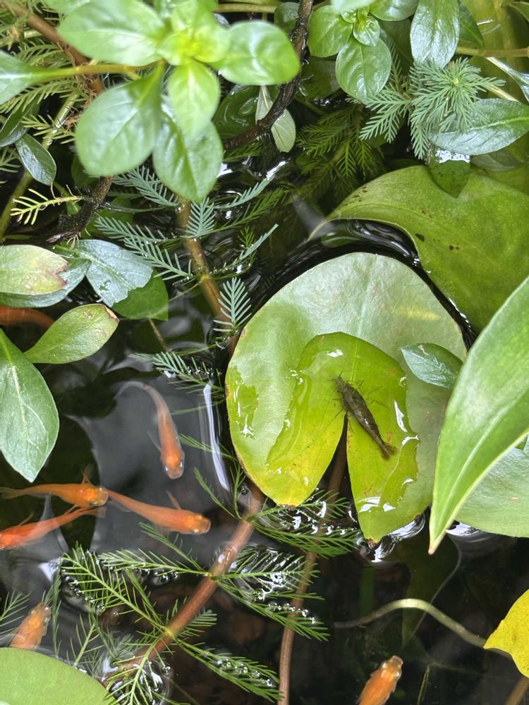 睡蓮鉢、普段は姿を見せないエビちゃんが登場してびっくり😅