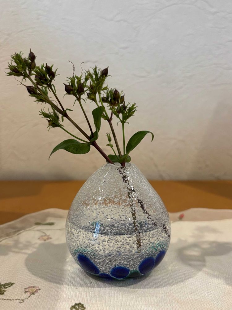 ③ 岐阜市の器屋さんで購入した沖縄のガラスの一輪挿し。