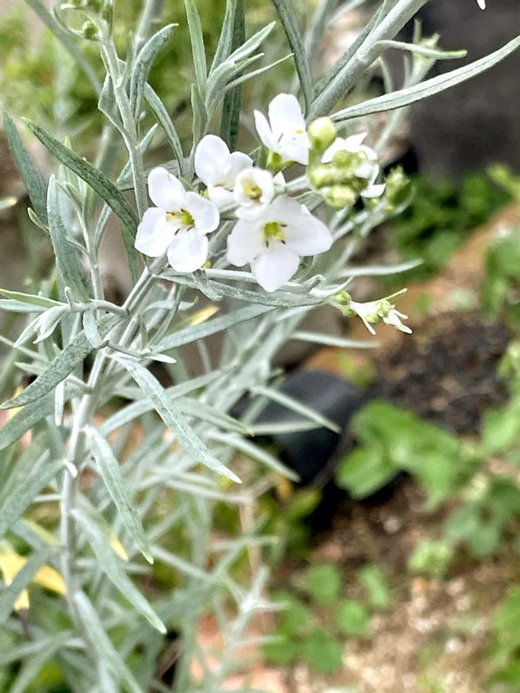 ヤグルマギクのようなシルバーリーフで、白い可憐な花がとても可愛い花です