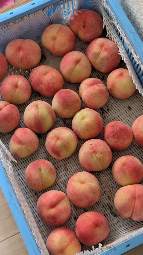 こんなに沢山貰ったの👌私は娘和歌山荒川の桃買いに行ったらしくて1箱貰ったがメチャクチャ甘かったよ、生前の旦那と志賀高原麓迄桃🍑買いに毎年12~3箱買って友人に配ったよ、友人達からあの桃美味しかったなぁ!て、亡くなった旦那に感謝しているよ