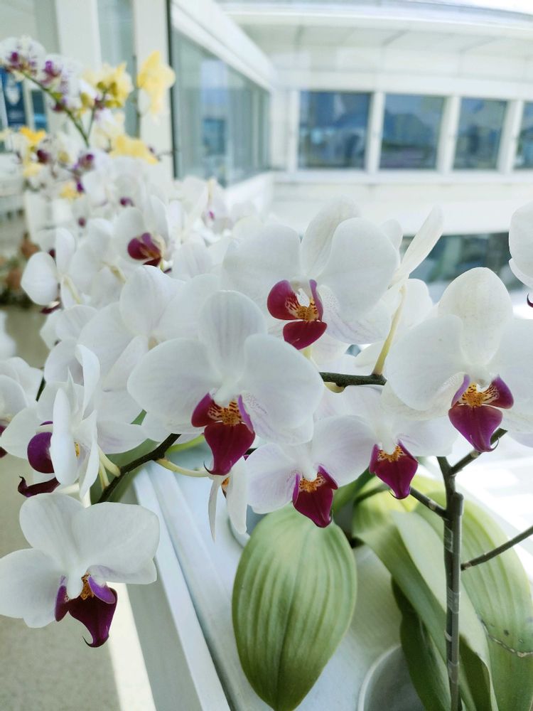 3️⃣4️⃣那覇空港はいたるところに胡蝶蘭が。白い胡蝶蘭をお届けします。