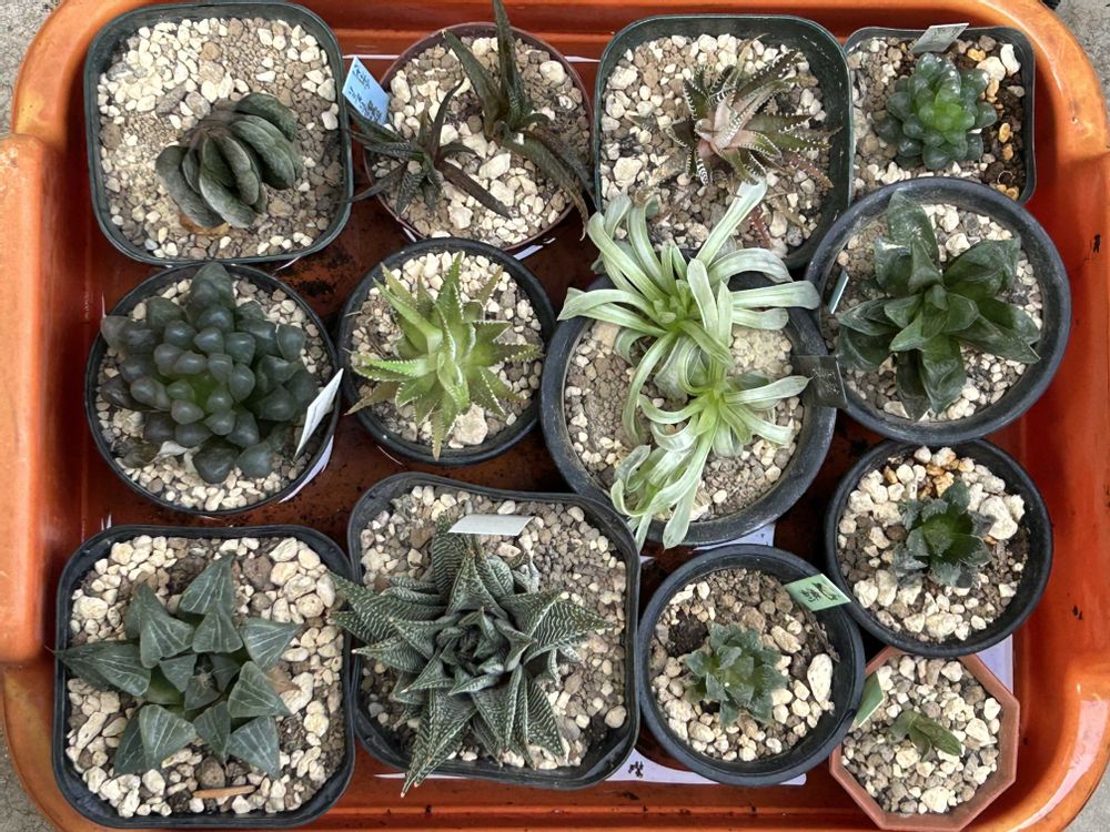 この前、植替え〜なんて言ってたけど、いっぱいやったつもりなのに、コレだけだったかなぁ(´╯σ ╰`)?と思ったら、ハオルチアの棚のもやったの忘れてた〜。