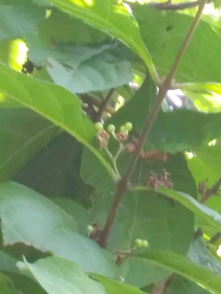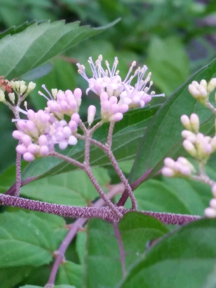 ムラサキシキブとは花茎の付く位地が違い、ムラサキシキブは葉と同じ位地から出てるのに対して、葉から4~5㎜離れて出ます