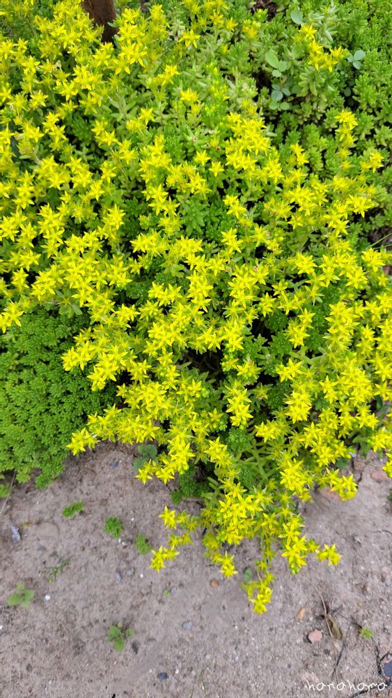 ご近所さんから数年前に手のひらに乗る位のセダムを頂きました。今庭のあちらこちらに増え続けています。