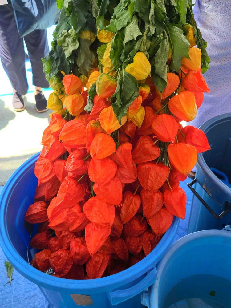 バケツ🪣いっぱいにつまれた盆飾りの「ほうずき」をパシャリ🤳色鮮やかですね😃
