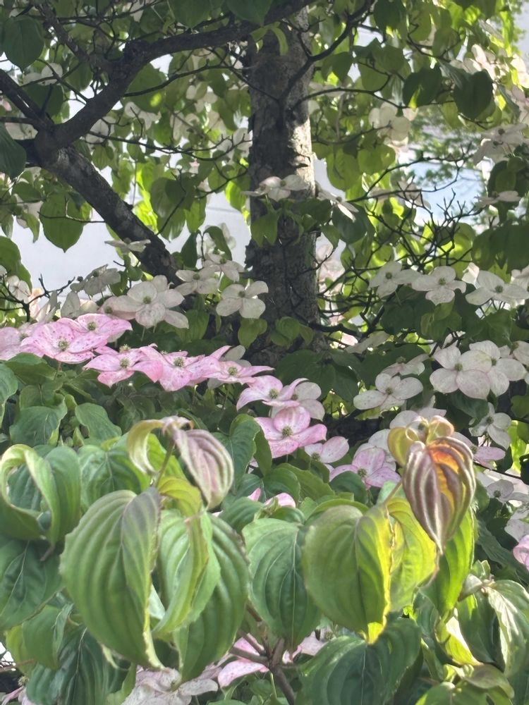 ヤマポウシにも紅花があるんですね。縁取りっぽいのが可愛いです💕