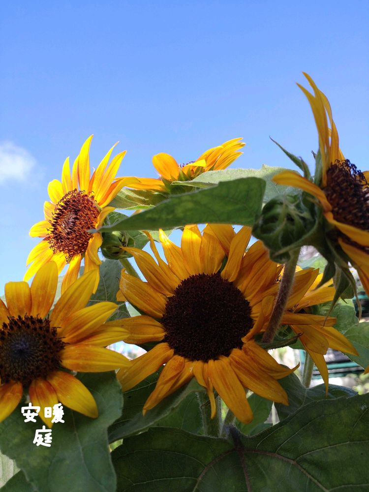 の零れ種で 凄くでかいのと 1m位で 沢山花を付けてるものと 色んな🌻が咲いてます