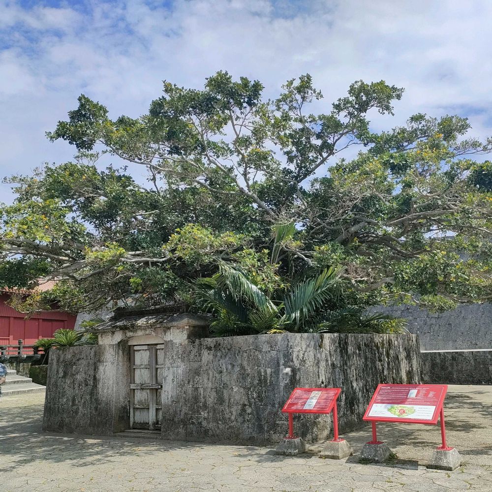 首里森御嶽は正殿城壁手前にある礼拝所で、首里城の中で一番の聖地だそうです。御嶽の中に植えられたガジュマルが大きく育ち枝を広げています🌳。