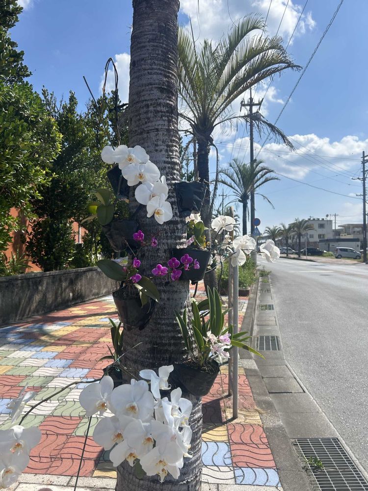 阿嘉島に行った時も玄関口の木にデンファレがくっつけてあった