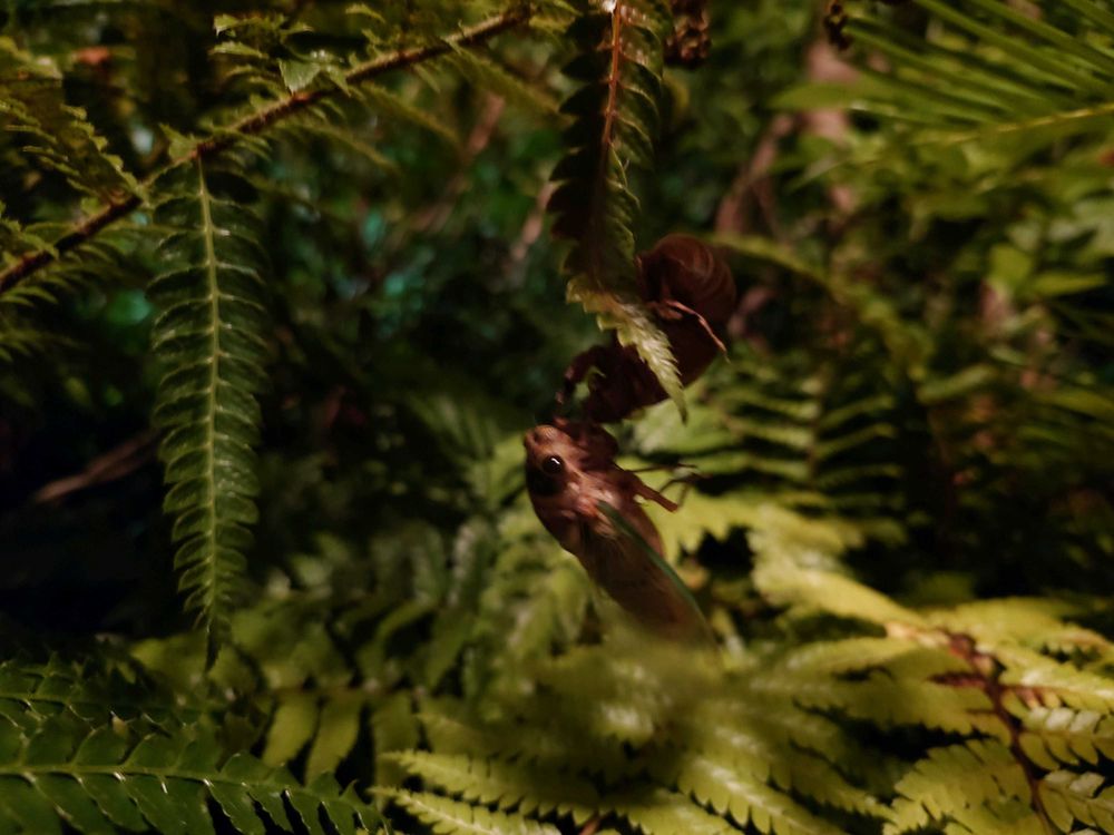 5/17に天芽挿しをした2つのうち、1つは大きな葉が出て来ました。もう1つも動き出してます。3枚目は昨晩見つけたオシダにぶら下がる蝉の幼虫の脱皮直後。今朝にはもう、無事旅立ってました。