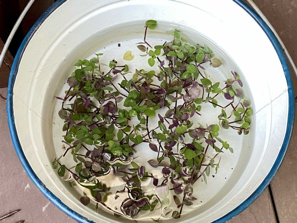 ちょっと伸びたカリシア🌿を✂️メネデールを入れた水に入れておいたので挿してみました💚