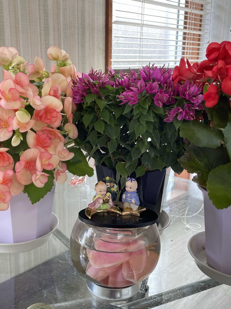 7月にはいり 七夕🎋のキューピーちゃんを お花と一緒に😄