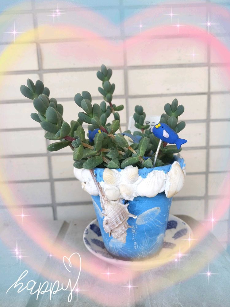 先代の碧魚連🐟️を夏の猛暑で枯らしてしまい、レーマニーをお迎えして以来🐟️🐟️🐟️〜🎶元気に泳いでいます😁👌貝殻を使った素敵なリメ鉢を頂いたから植えるのは合う子にしようって🤗✨
