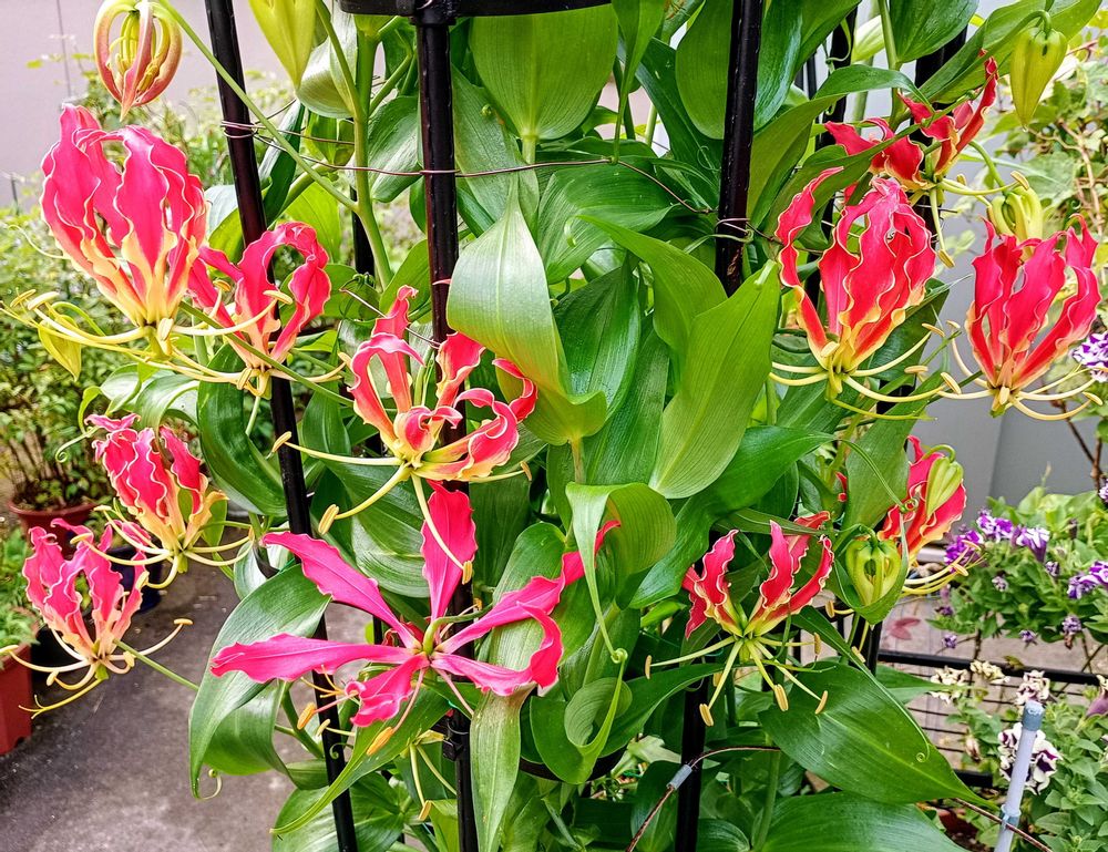 ✤グロリオサ、着々と花数を増やしてくれています(*˘︶˘*).。*💕