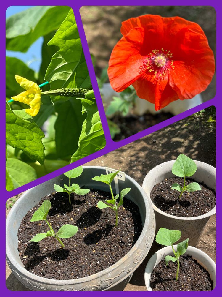 おはようございます。晴れ、30.3℃、10:00ムシっと暑い。先日相棒のお友達から頂いた八重山諸島産のパイナップル、美味しくいただき、クラウン部を少し取り水耕栽培開始。ゴーヤ、36日目雌花が咲きました。ポピー5世287日目久しぶりに咲きました。青肉メロン、16日目プランターに苗植えしました。😻😍🥰😸😋☺️