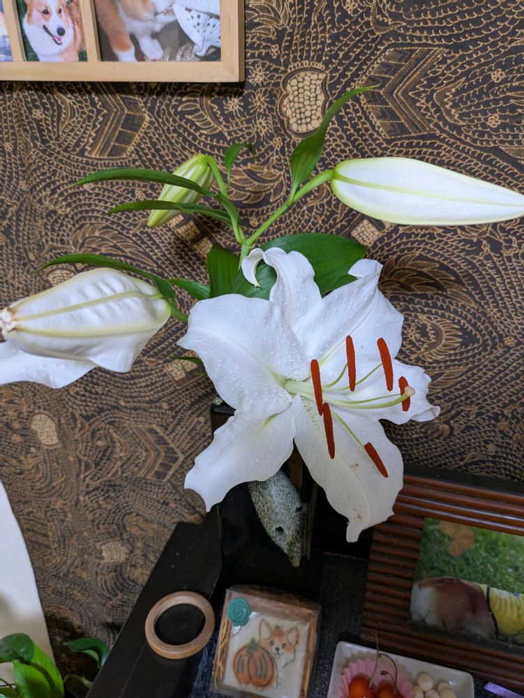綺麗に咲いたカサブランカ ゴンちゃんも喜んで観ていることでしょう☆。.:*・゜