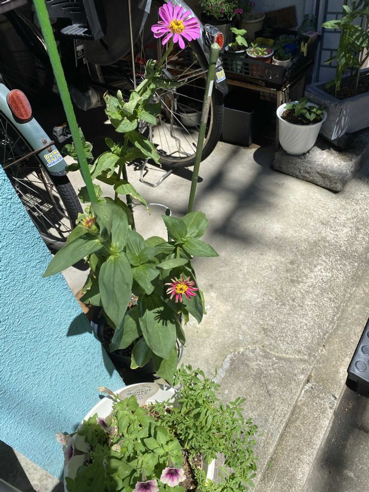 ダイソーの百日草、種まきから育てたけど、4本あるの皆んなピンクかも😅